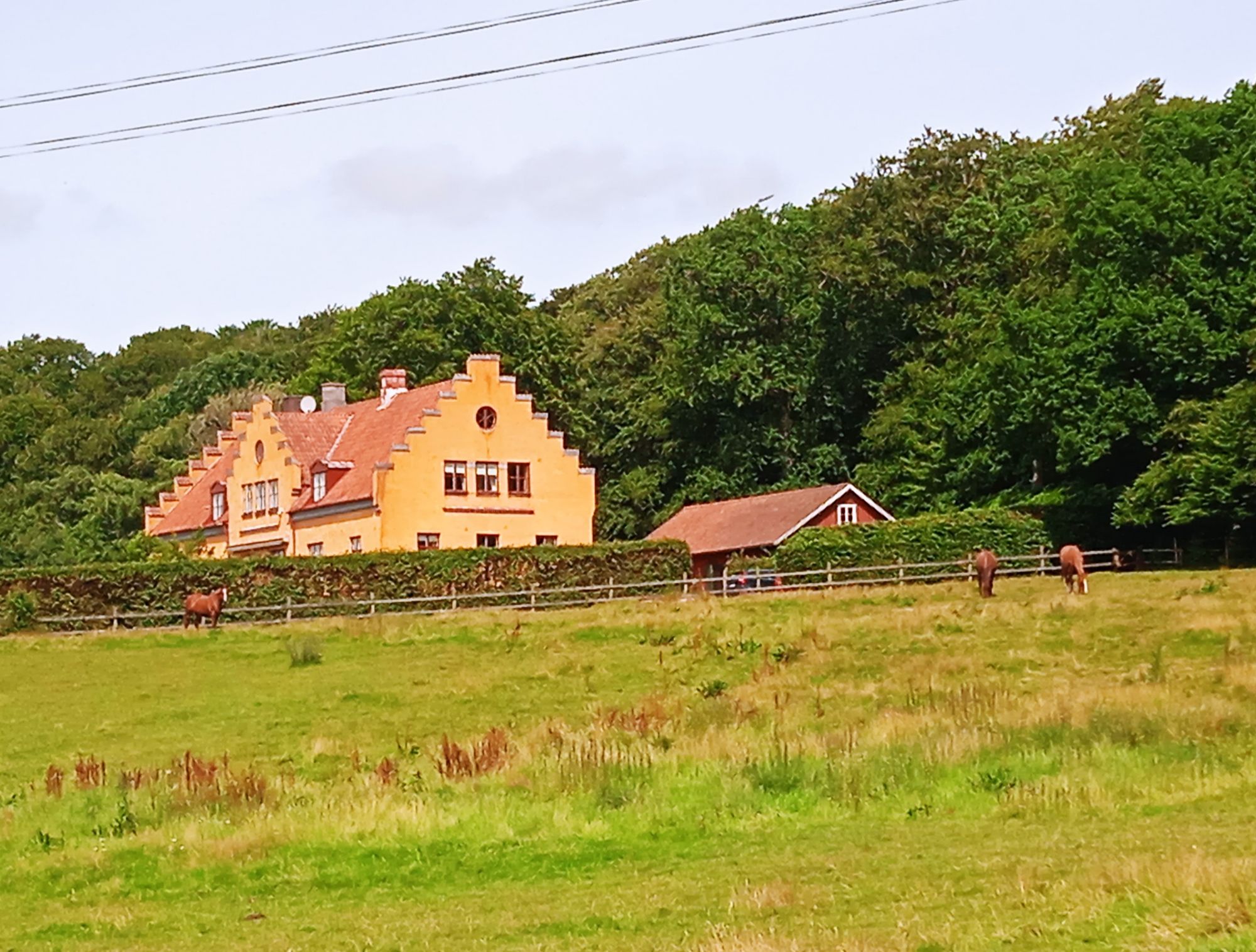 Kände hästlukt och jo, där stod det hästar i en hage … det var de hästar jag såg när jag var inne på slottsområdet. Man kan skymta dem i en bild från förra inlägget.