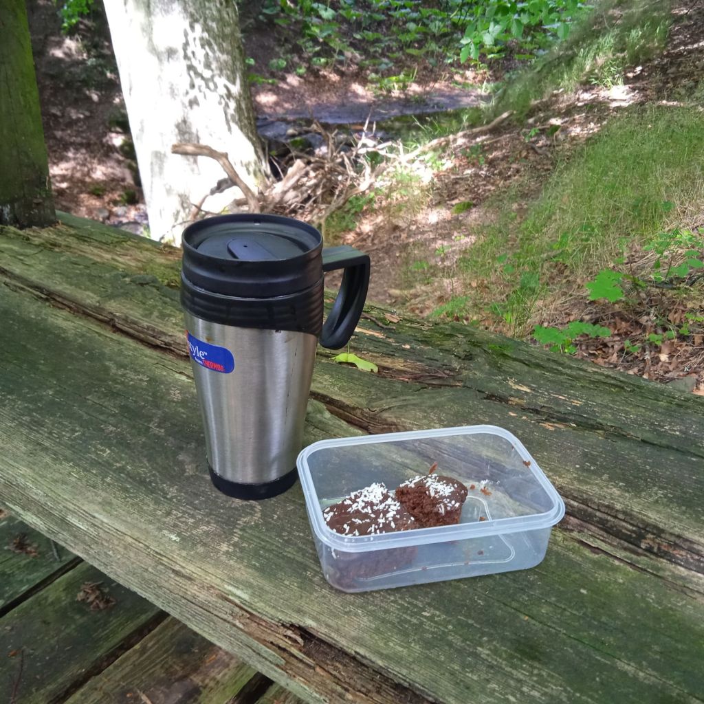 Där satte jag mig för lite fika och kikade på ”bäcken”, hahaha, nä inte mycket vatten fanns det, lite porl hördes det från minivattenfallet. Men mysigt var det att sitta där i skugga och andas, smälta in alla intrygg och ”drömma-mig-bort-tankar”.