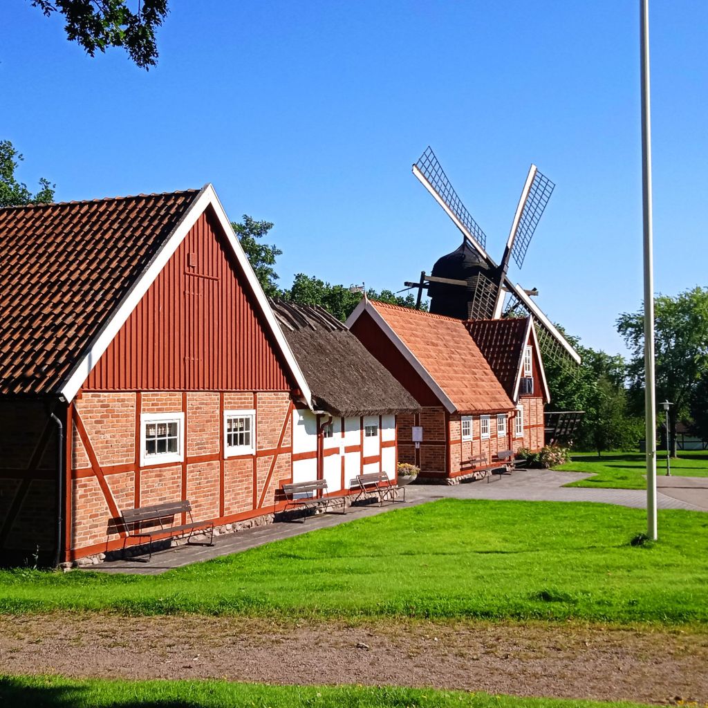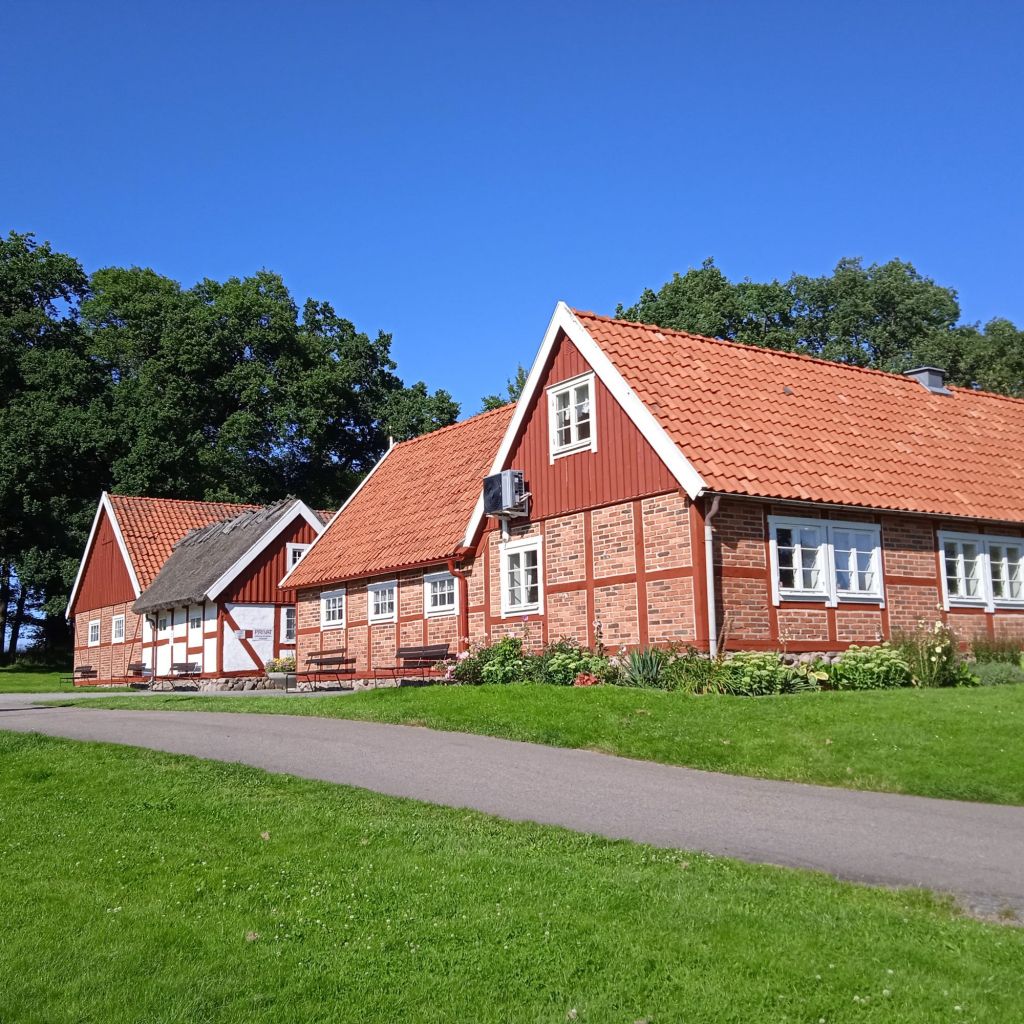Vi har haft fantastiska dagar med massa sol och värme, vilket sommarväder, helt underbart. För några dagar sedan tog jag mig en cykeltur. Hamnde i Perslund, har inte varit där sedan sonen var ca 4 år, alltså för ca 24 år sedan :-O … Förr fanns det en liten fin damm med änder i, det fanns kaniner och höns (?) som barnen kunde kika på … nu är det bara en grön plätt och djuren är borta. Men det som stod kvar är Möllan och korsvirkesgården.