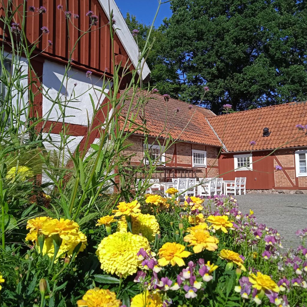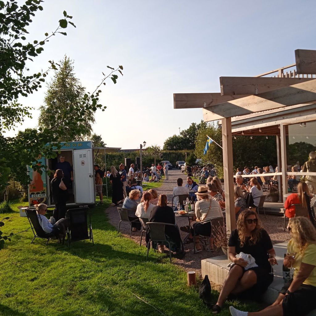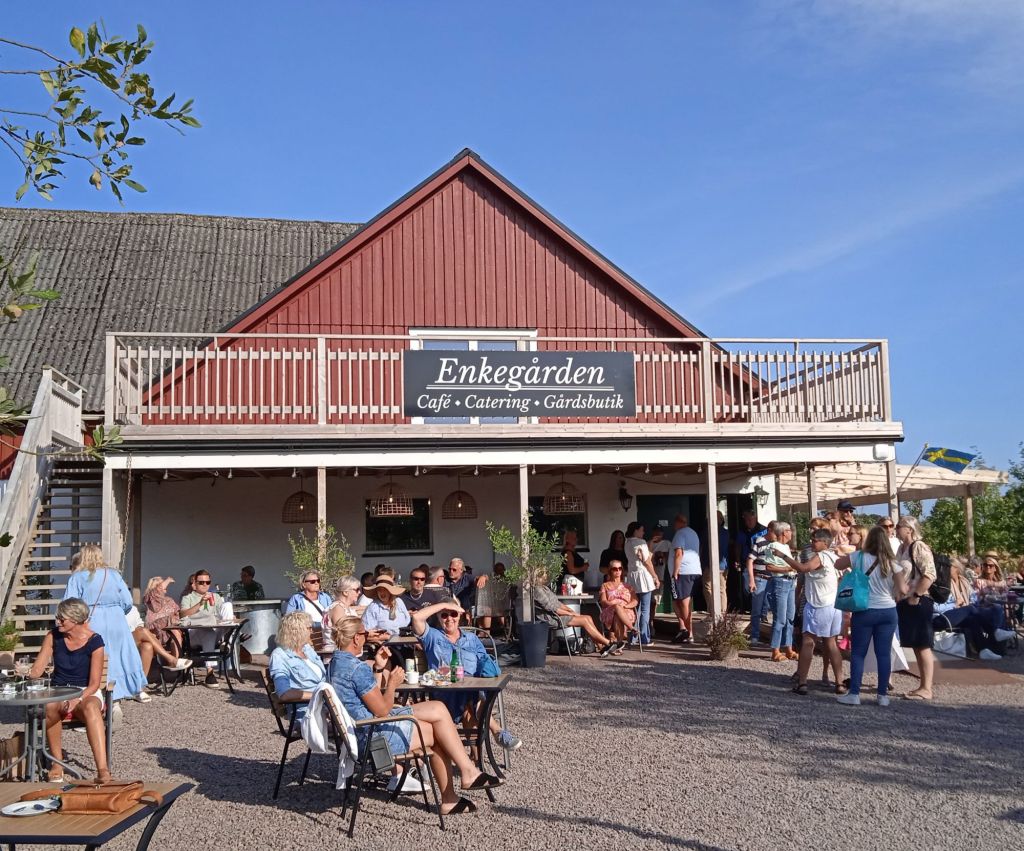 Nåväl, jag åkte till Ängelholm … och hamnde i utkanten av Ängelholm, på Enkegården. En positiv överraskning! Syrran mötte mig på parkeringen och ledde mig in till jippot som pågick där, fram till hennes väninna och särbo.
