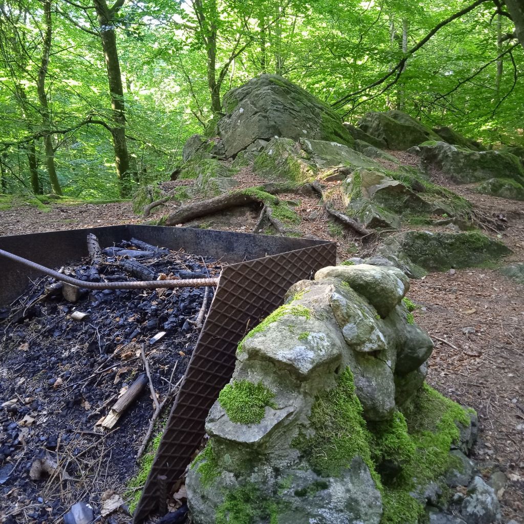 Helt plötsligt såg jag en liten grillplats, i verkliga livet var det så mysigt … men här vill man inte ramla ner, det var ett ”stup”.