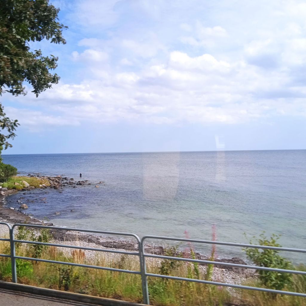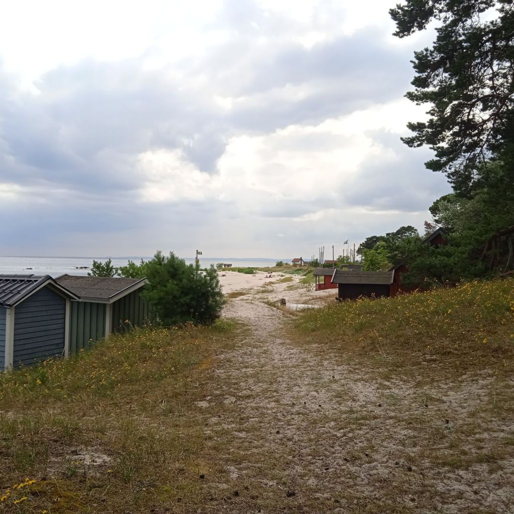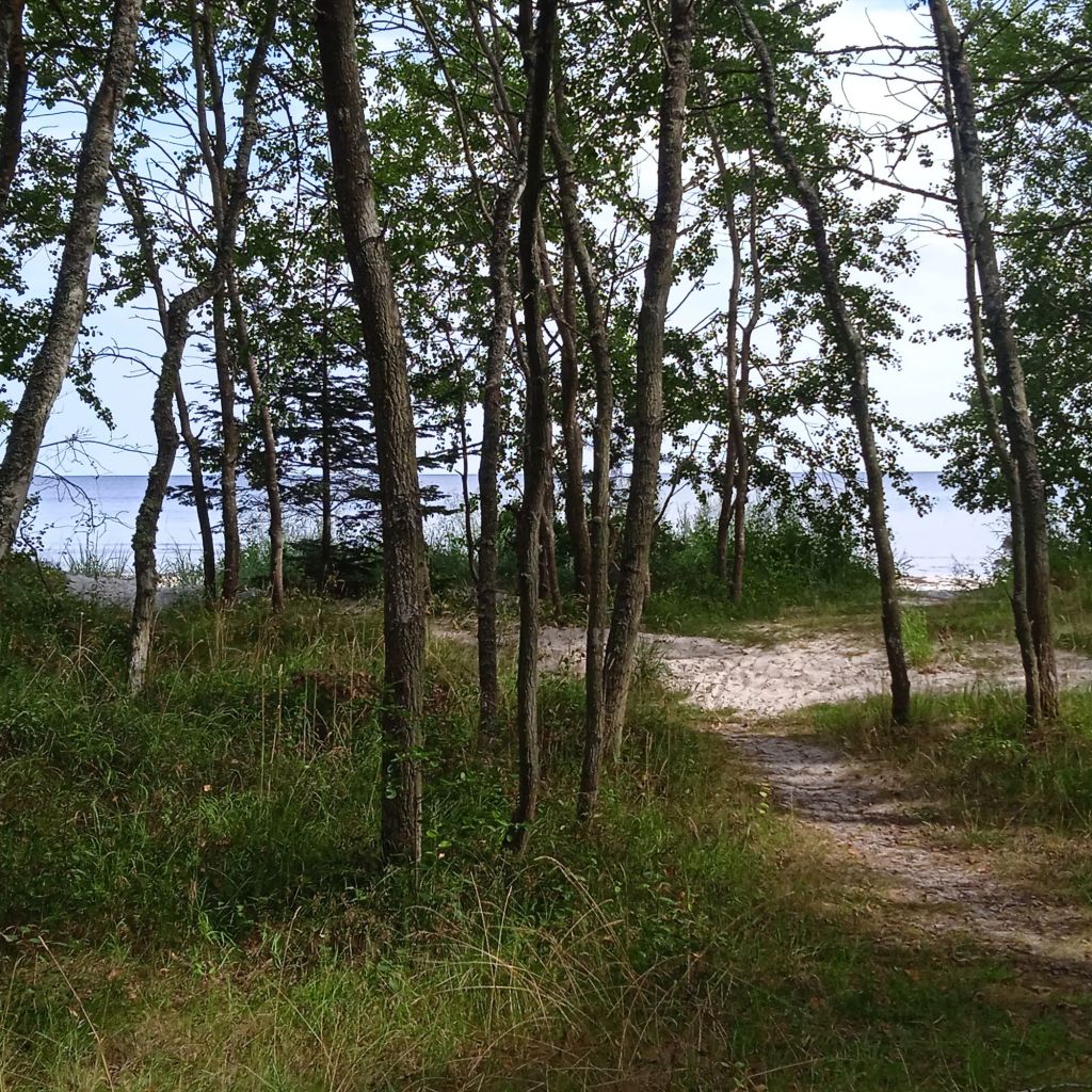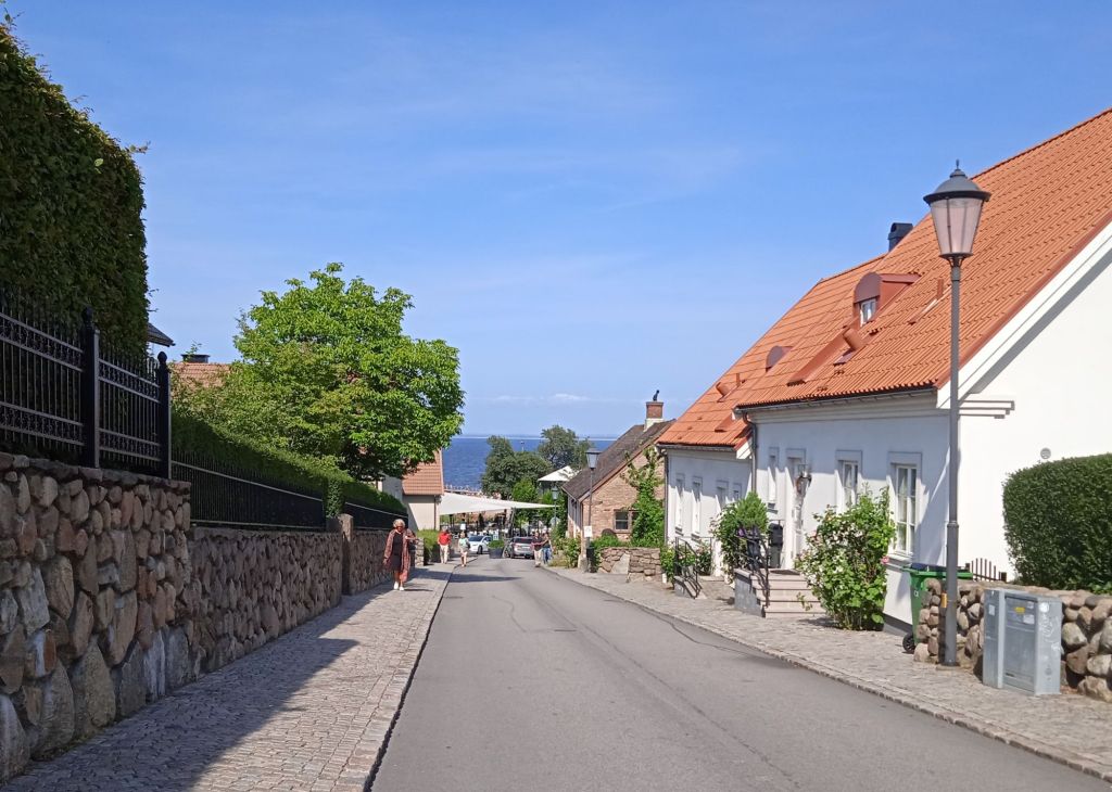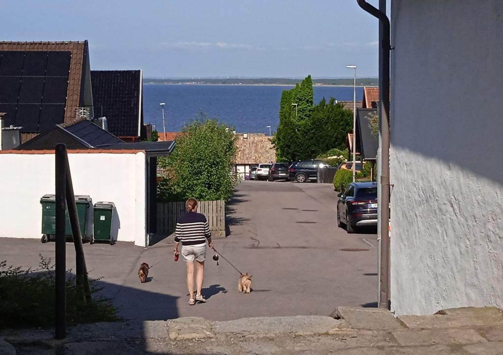 Här var det inte något kulturellt eller något speciellt att se, stort villa- och stugområde, men fasiken vad fint, jag dooog av avund över alla som har hus och stugor där, fan vad mysiga lyor. Jag tog inte en enda bild på dessa hus och stugor, omöjligt, men ju längre jag kom havet ju mer skog blev det, och då fler stugor/sommarhus … säkert också några åretruntboenden. Jag såg ett rådjur med sin kid komma gående över lilla vägen jag gick på, men såklart kom det en biljävel och som både skymde dem och skrämde dem, jag hade annars haft den perfekta bilden, gaahhhh, de var hyggligt nära också, max 8-10 meter ifrån mig.