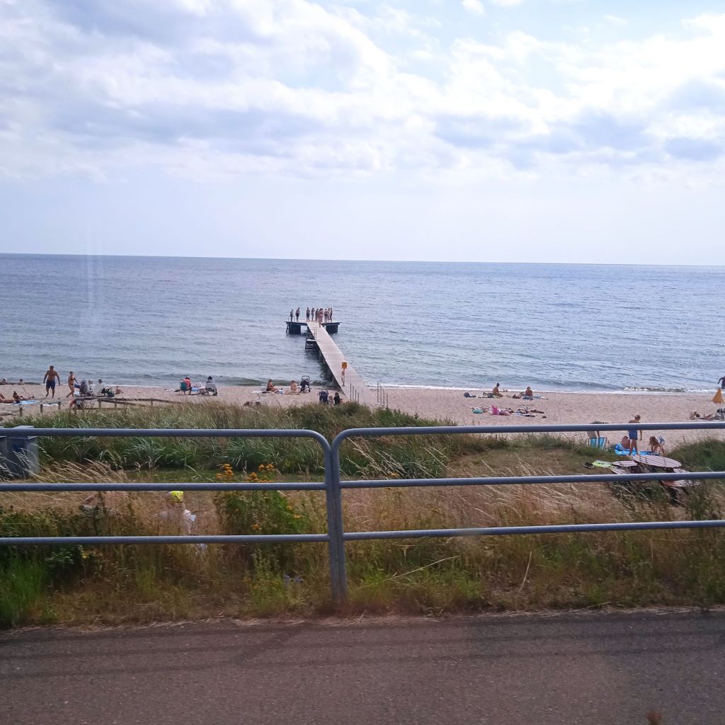 Från Smygehuk Hamnen tog jag buss 190 i riktning mot Ystad. I ca 40 minuter satt jag och bara mös och satt med hakan nere vid knäna, så otroligt vacker sträcka, havet, stränderna, husen, ja allt! Vet inte hur många gånger jag tänkte: Där vill jag bo, där vill jag bo, där vill jag bo … åhh så fint, åhh så fint …” Ja, ni fattar. Galet hur vackert det är längs den kusten. Försökte ta bilder genom bussfönstret, men det var svårt.