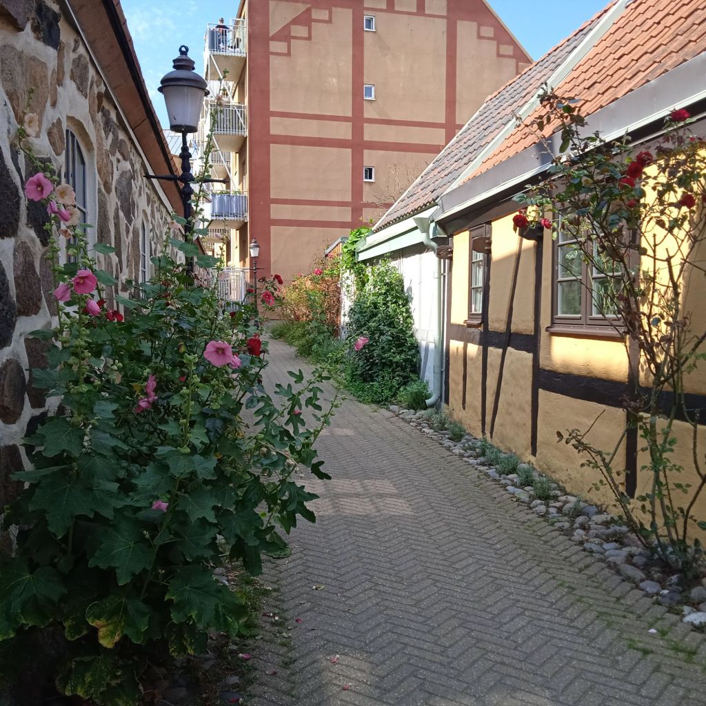 Mysiga gränder överallt med så många stockrosor, stockrosor överallt, och andra rosenbuskar så fint.