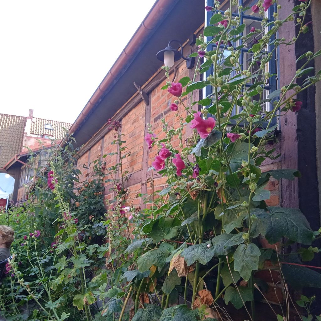 Stockrosor prydde de redan vackra fasader, men gjorde fasaderna ännu vackrare …