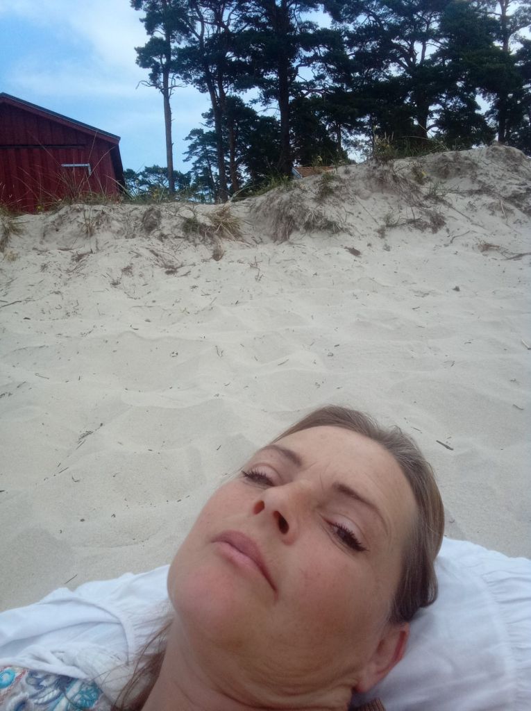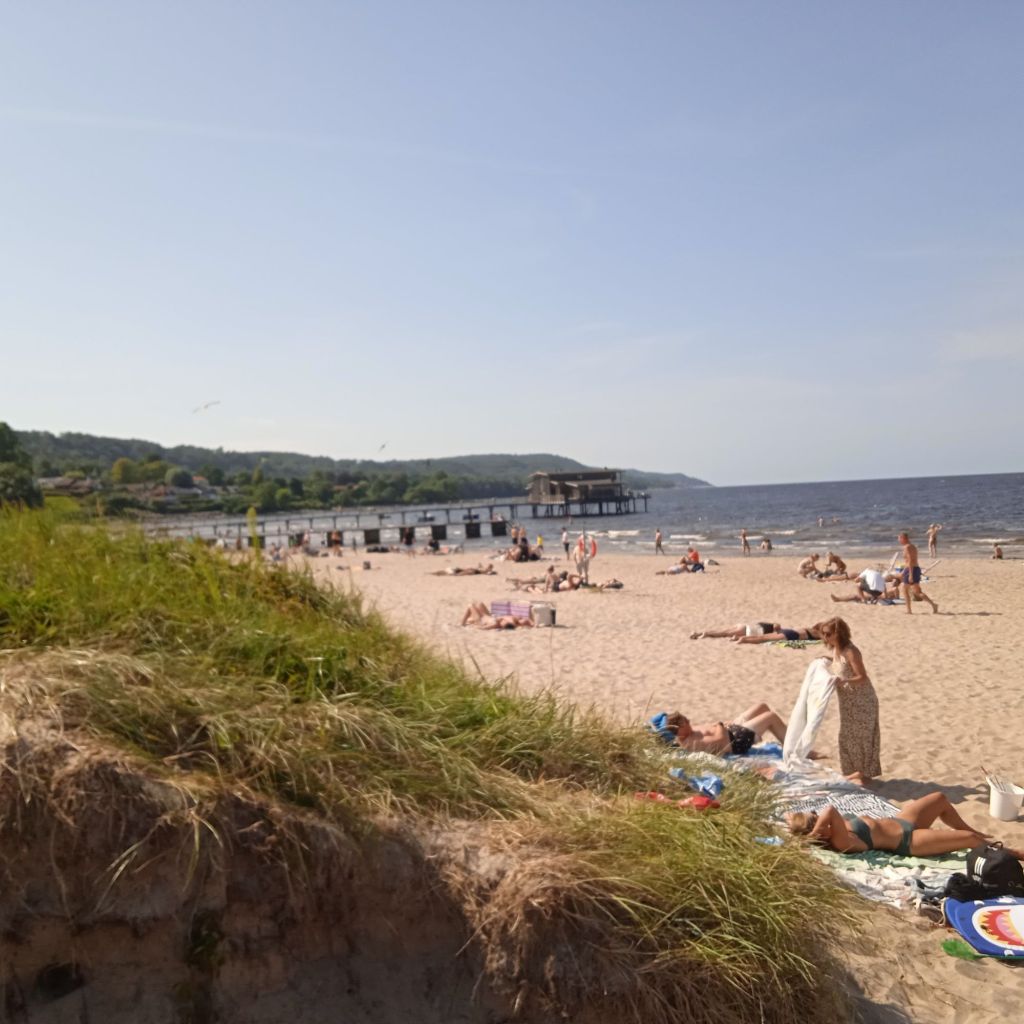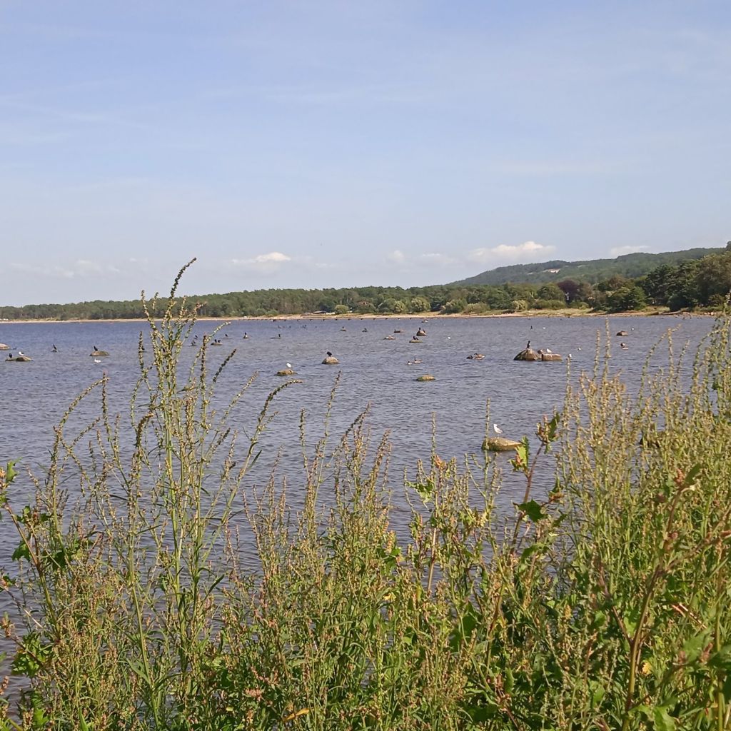 Jag kände på vattnet och det var förvånatsvärt varmt … eller inte varmt eller ljummet, men hyffsat varmt så till och med jag kunde bada, nu badade jag inte, kände att jag inte hade tid att ligga och torka, hade inte med mig byte, och det var lite för molningt att badkläderna skulle torka fort. Men nu ångrar jag mig lite … hahaha :-D