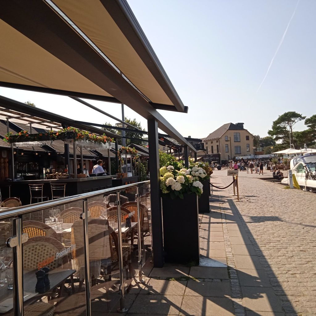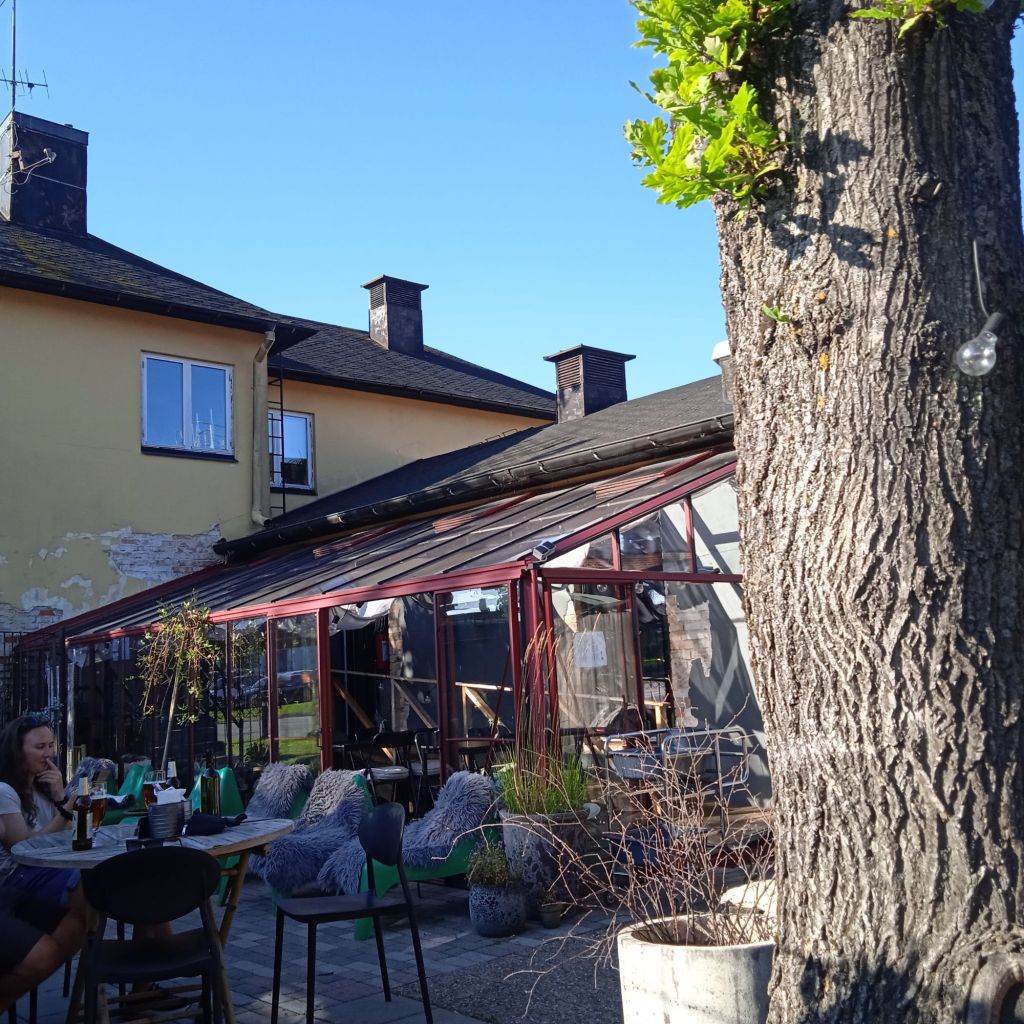 Gick inte in och satte mig på Absolut, trots att det såg ganska hyggligt ut … jag gick till stället jag sett på gps:en … ett himla mysigt ställe. Skugga var det gott om, vilket behövdes … började nu förutom tröttheten i benen och ryggen, få lite ”solsting” :-D