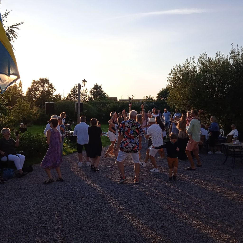 Men skördetröskan hindrade inte festen, utan det fortsatte spelas för fullt och folk dansade … jag satt hela tiden med stort leende …