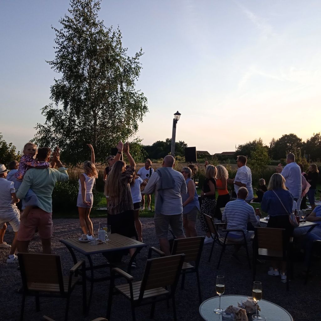 Fullt ös med en kille som spelade och sjöng, allt mellan himmel och jord, från Gyllene Tider till Elvis Presley, han var riktigt duktig. Folk sjöng med och klappade händer.