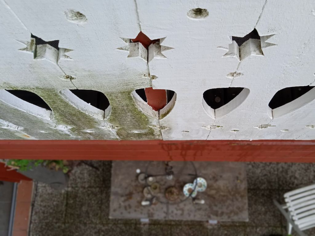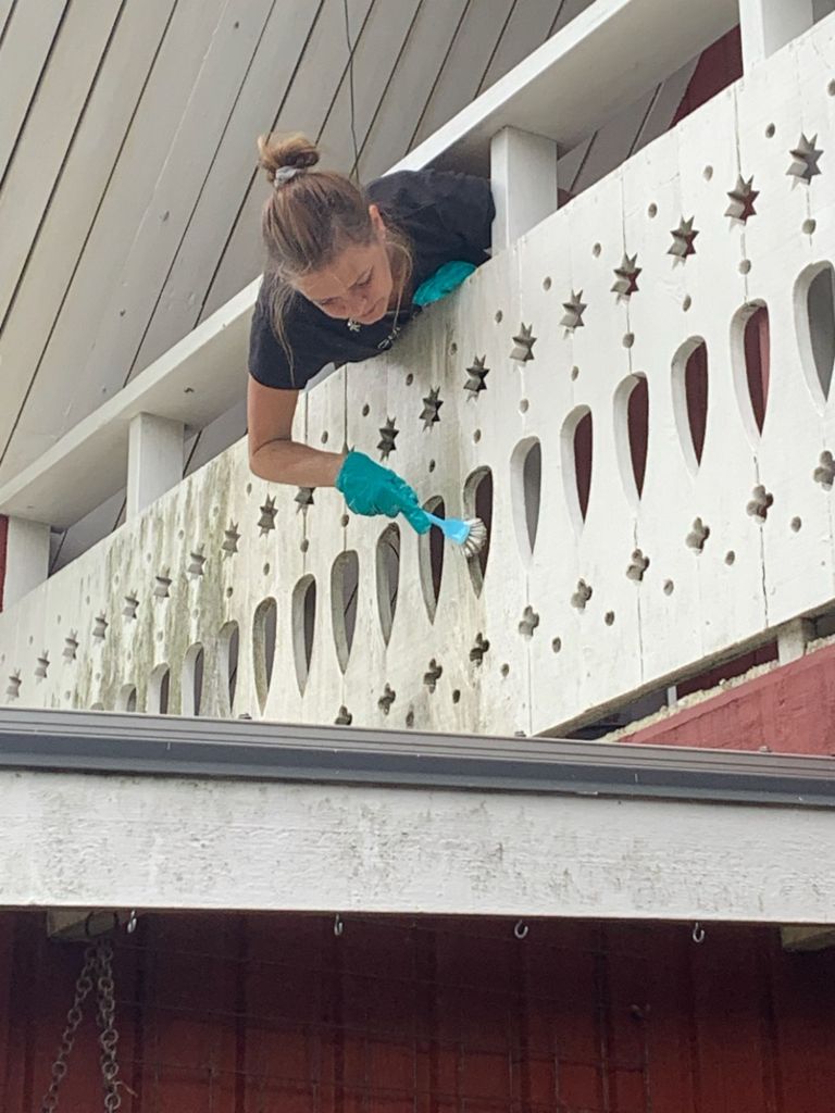 … det var både skurborste och diskborste för att komma åt mellan all snickeri, inte så lätt kan jag säga, mellan alla stjärnor, prickar och allt. Kan erkänna att jag har fuskat lite mot slutet :-D Först var det med grönsåpa och algtvätt, efter det spayade jag på med något annat alg- mögelmedel som ska vara kvar i några veckor …
