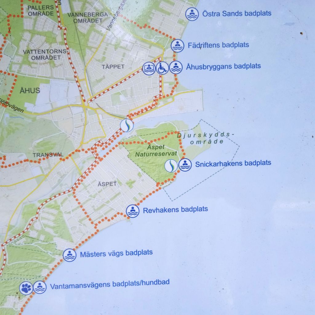 Det var inte många dagars vila, ett dygn, hehe … Tittade på väderrapport och tyckte att moln vore bra, skönt att slippa sol när man promenerar mycket, även om det är fantastiskt. Så ja … jag kunde inte hålla mig så vid lunchtid hamnde jag i Åhus igen :-D . Jag ville ju se andra sidan, alltså södra sidan av Åhus som jag inte orkade med sist jag var där.