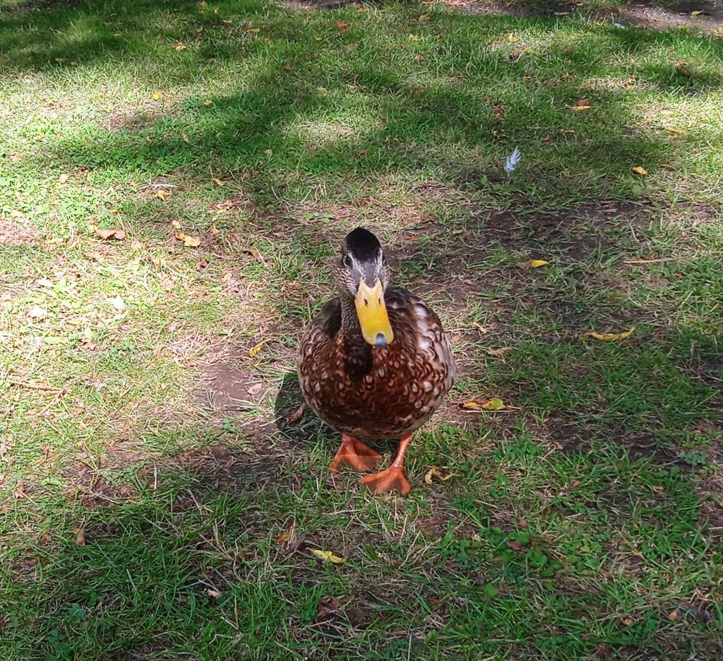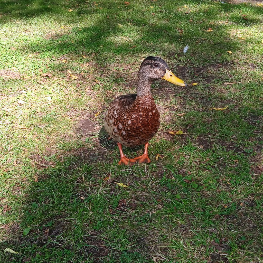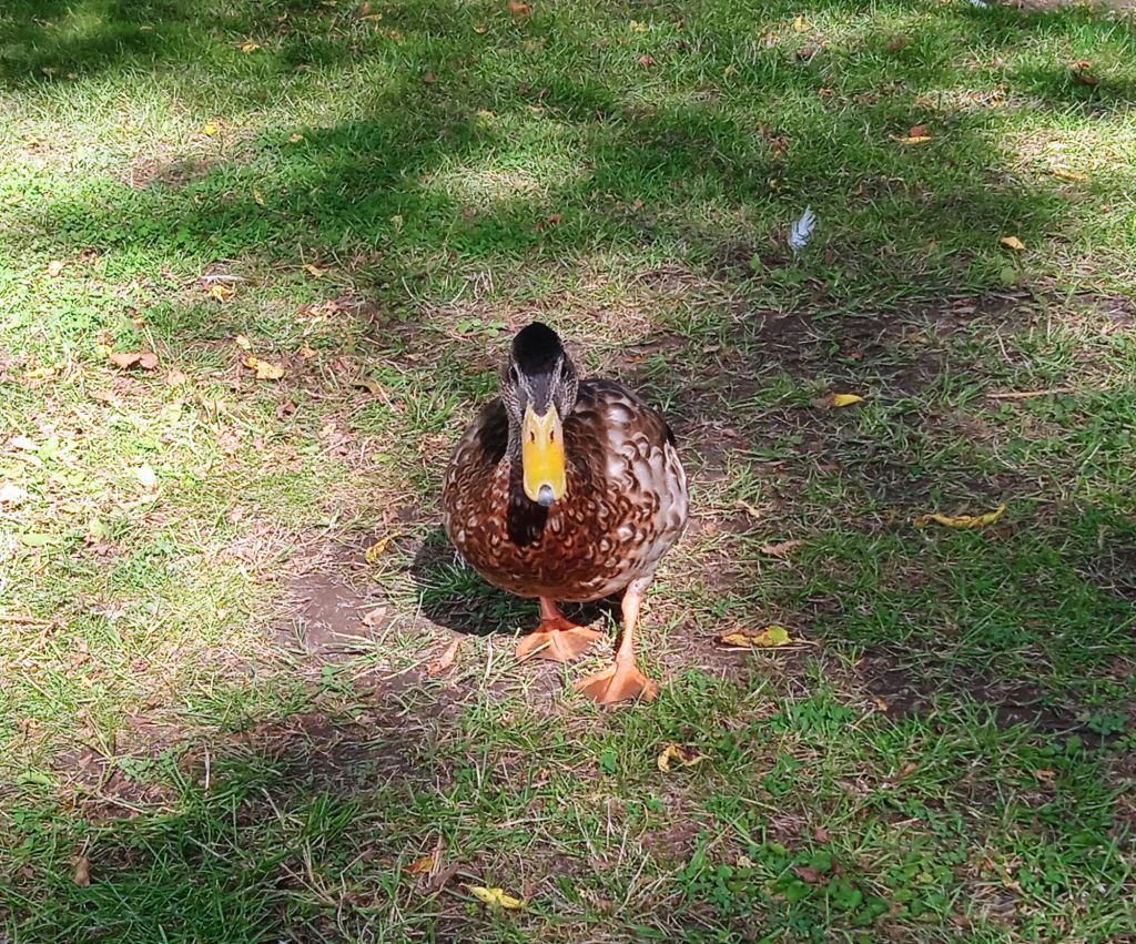 När jag kom ut från parken såg jag en damm och där kom han och vankade efter mig en bit, jag tror han trodde jag hade mat, men det hade jag inte för den var uppäten för flera timmar sedan. Jag som avskyr fåglar tyckte ändå att det var lite kul att denna krabat vankade efter mig :-)