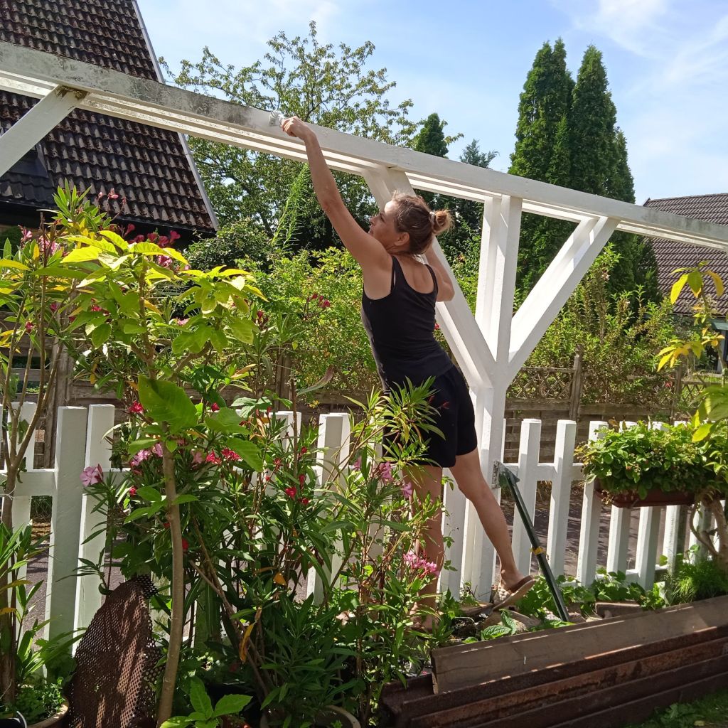 Fixa mer … jag började med staketet, det behövde verkligen fixas till, har inte blivit ommålat på x-antal år … easy peasy tänkte jag. Jo visst! tog bara tre dagar, från morgon till sen kväll … I skrivande stund är jag helt mör i kroppen, vem behöver gym?