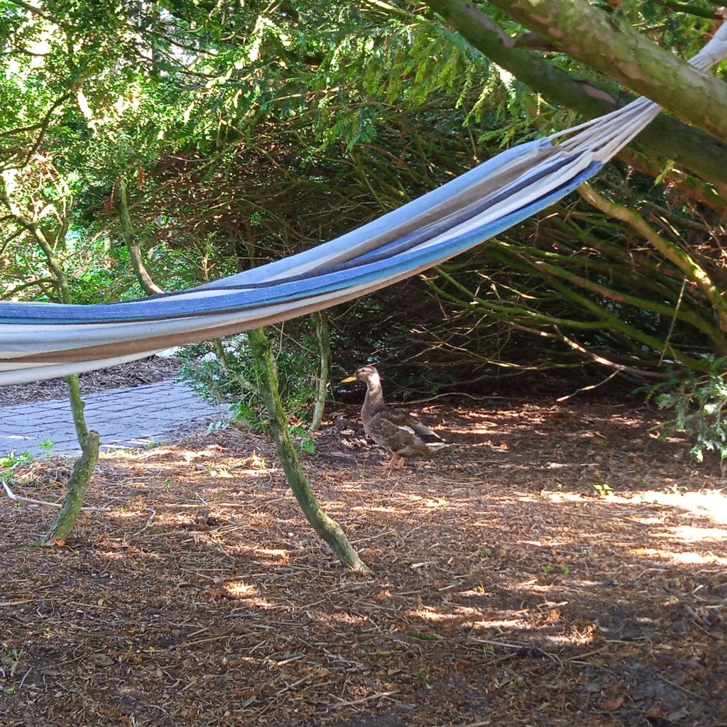 … och en ensam liten and som eventuellt ramlat ner från hängmattan, eller vaknat upp efter en tupplur …