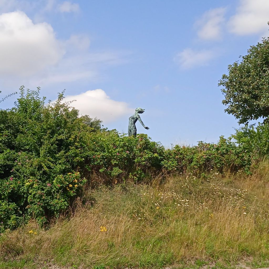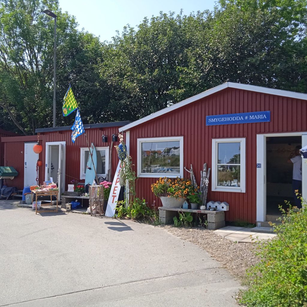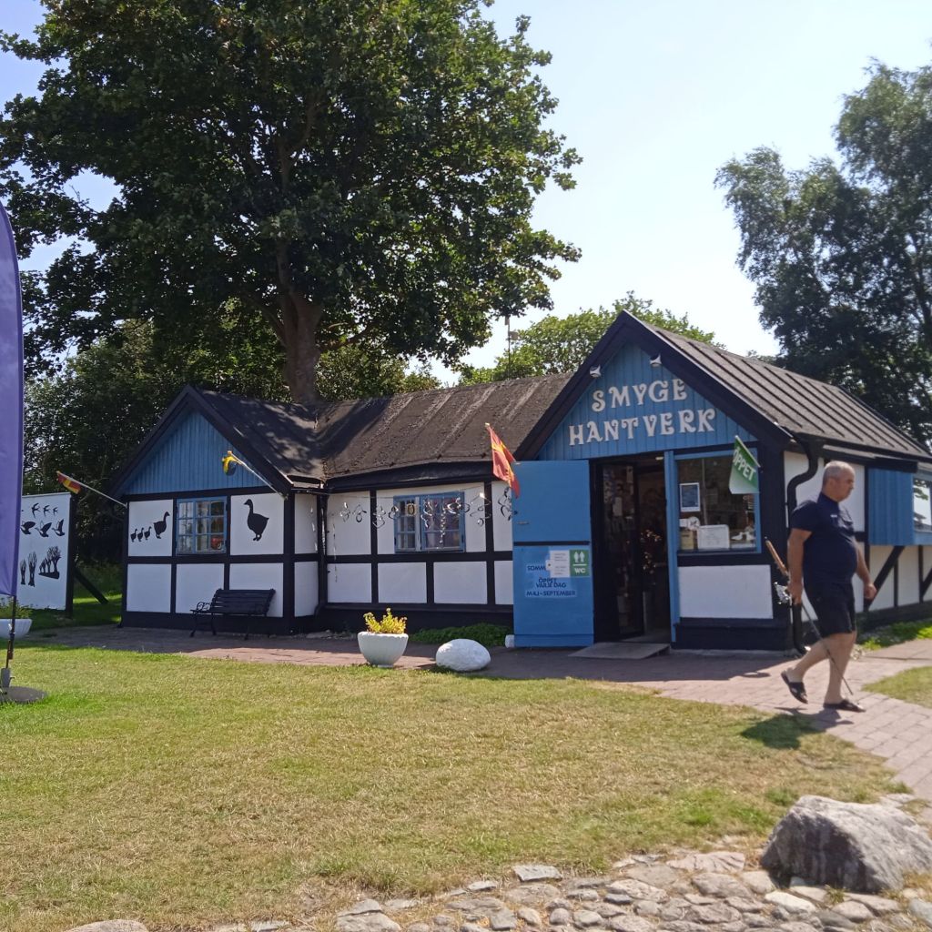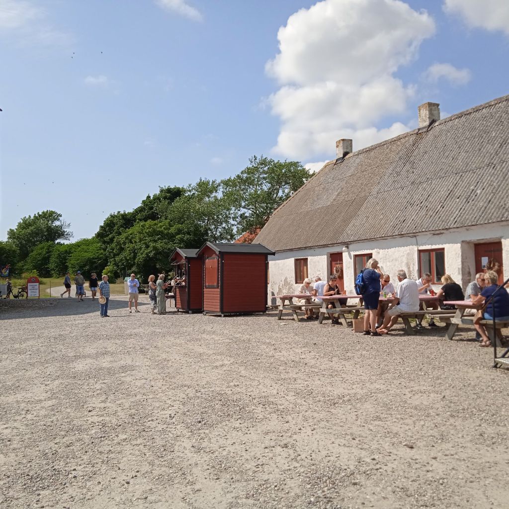 Tycker inte om att gå in på offentliga toaletter, ni vet sådana där små hus, och toalettbesök behövs mellan varven. Kände mig tvungen att köpa något att dricka för att låna ett café’s toalett, så det blev en öl på Café Smyge. Ett gulligt ställe i en härlig trädgårdsmiljö med vingliga bord och stolar bland gräs och annat grönt.