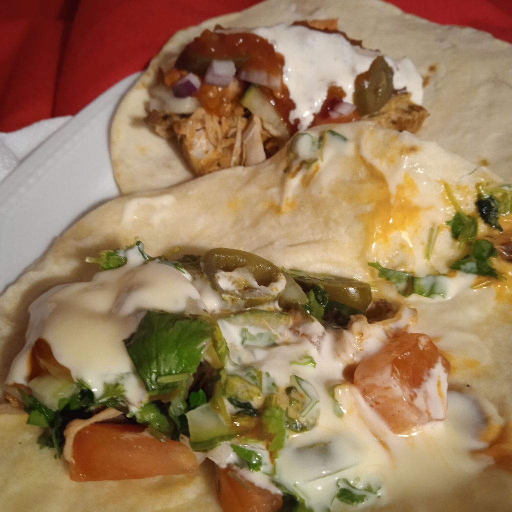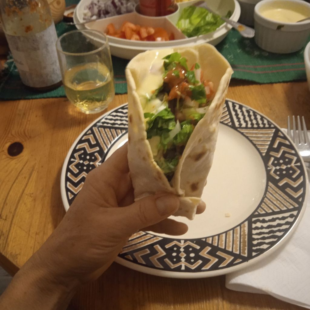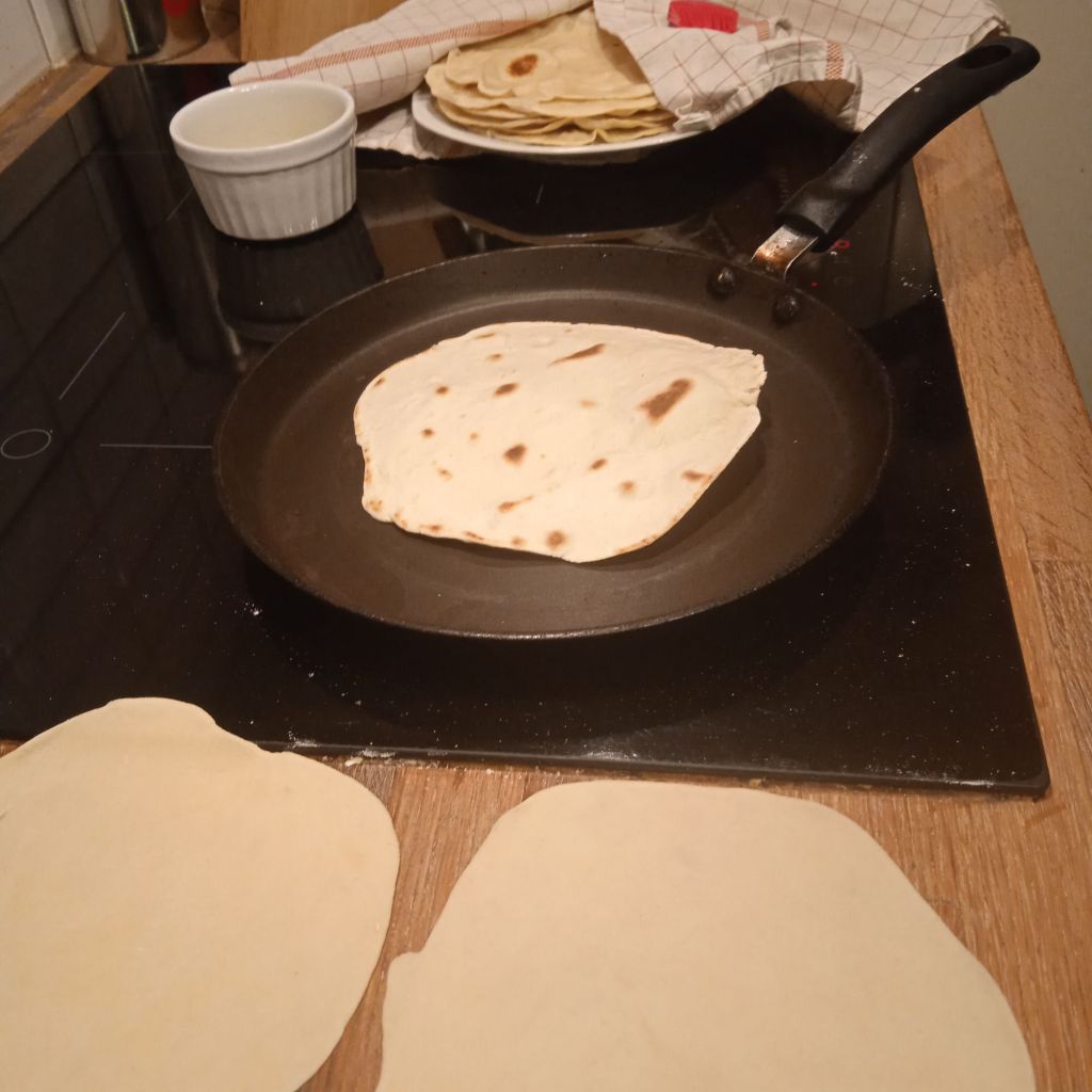Vad har mer hänt? Bakat tortillabröd till ”min” taco, som innehåller pulled pork, finhackad tomat, lök och perilja, koriander, citronmajonnäs och chilisås, ALLT bör göras själv … kanske inte tomat, lök och persilja, om man nu ínte har egen odling … koriander är kanske svårt att odla själv, vet inte … ska testa det snart.