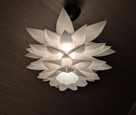 Jag har även pysslat ihop en lotuslampa, gaahhhh, den var jobbig att få ihop! Den är 50*35 cm har jag för mig. Vet att jag filmade lite, men blev tokig, så kanske jag raderade det filmklippet, ska kolla. Har två ljuslyktor som jag filmat undertiden jag byggde ihop dem … allt det där visas en annan gång.