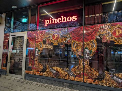 För ett tag sedan fyllde syrrans ungar år, 18 och 20! De hade en liten fest hemma, men just den dagen kände jag att jag behövde vila och kurera mig. Har ju gått förkyld och konstig i lång, lång tid, förkylning som inte riktigt velat bryta ut ordentligt. Nu är jag bättre igen, och börjar kunna andas normalt med näsan utan massa snorblockeringar och ja, ni förstår. Vilket fall som helst så kände jag lite dåligt samvete över att jag inte var med och firade. Så helgen efter ringde jag och frågade om vi skulle ses. Direkt efter jobb åkte jag hem till dem. Sonen var inte hemma, men syrran och dottern var så lilla Ella fick bestämma vart vi skulle äta … Det blev Pinchos, väldigt bra val! Har aldrig varit där, så det var kul.
