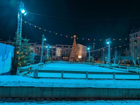 … förbi isbanan/skridskobanan. Vi kände lite på isen, åh vad jag blev sugen på att åka skridskor. Men så klart uthyrningen var stängd vid den tidspunkten vi var där.