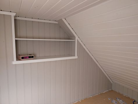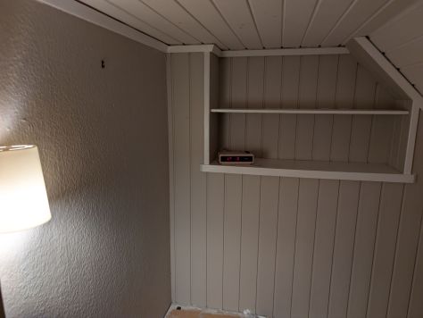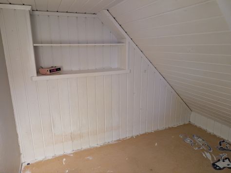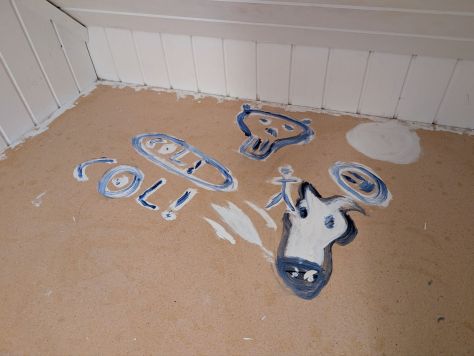 Jag har också hunnit med att måla en sovalkov i föräldrars hus. Där jag huserar innan min riktiga flytt … Jag vet vem som kladdat där inne, och inte är det jag. Finns andra i familjen…