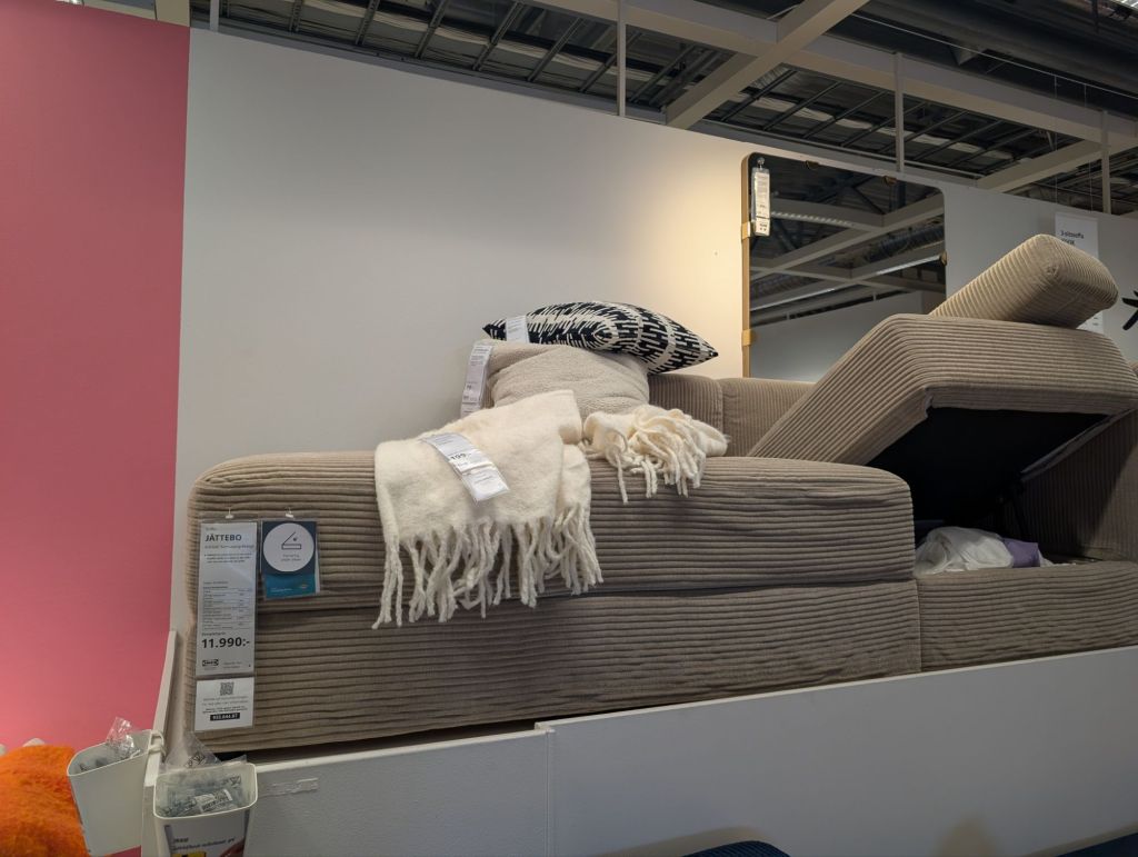 När jag var på IKEA kikade jag igen på en soffa som jag sett innan … och jag tror nog jag kommer slå till på den, men vet bara inte om jag ska satsa på den stora kombinationen …