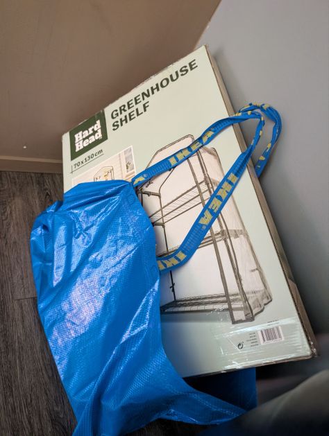Åkte till IKEA på en av de få lediga dagar jag har mitt i veckan, skulle köpa två små hyllor till mina kryddor och lampupphängen till några lampskärmar som jag har … slutade med att jag även hamnade på Jula och köpte ett drivhus … typiskt mig att vara så impulsiv. Men jag har tänkt på det i säkert ett år, och nu hände det! Bara lite jobbigt att släpa på i buss och sådär …