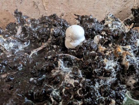 Champinjonlådan lever fortfarande, och nu börjar små, små hattar ploppa upp, så himla kul! Tänk att det kan vara så spännande med odling, och vilken glädje som infinner sig i min lilla kropp när det visar resultat.