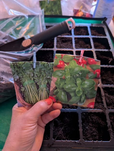 Så i förmiddags sådde jag dem i lådor, både de i papper och de i fröpåsarna … det får bära eller brista tänker jag.