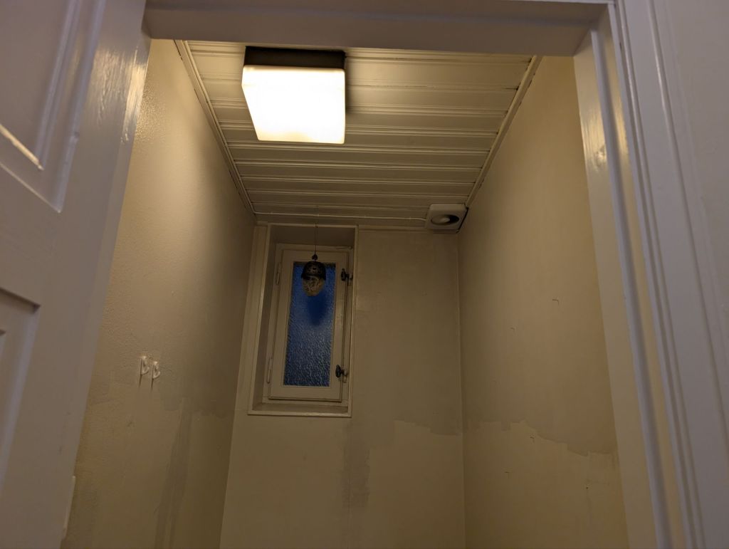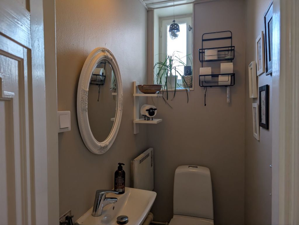 Vi började måla den lilla toaletten … Här är före och efterbild …