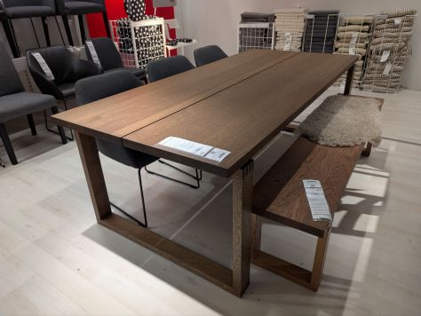 Smet även inom Panduro för att köpa en limpistol också, något som saknats mellan varven. Vidare in på IKEA … tittade lite på matbord och soffor. Detta matbordet vill jag ha! Det är rätt stort, så jag får se om ett sånt här kommer få plats där jag kommer bo, men undrar lite om man kanske kan bygga ett själv? Det ser ju ut att vara ganska enkelt, vad tror ni? Viktigast är att det får inte vara mindre än 100 cm brett. Snyggt med bänk till också.