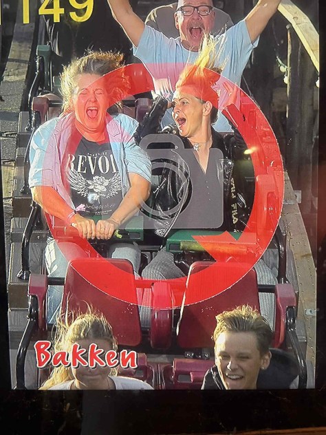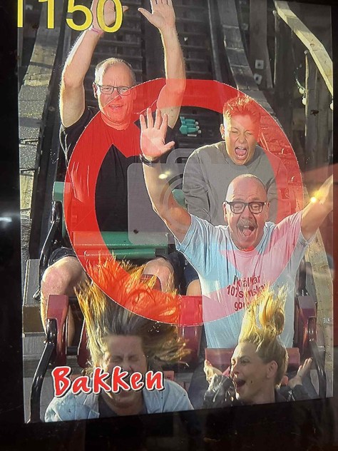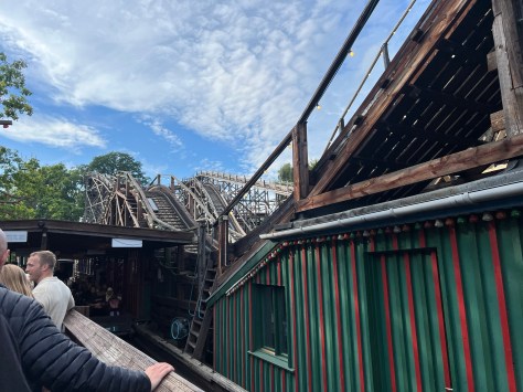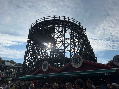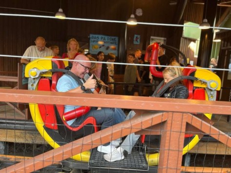 Innan vi gick och träffade de andra två som vi skulle umgås med, som jag fortfarande inte träffat sedan jag kom in i parken så drog vi med oss Johan på en tur i klassikern (ett måste att åka när man kommer till Bakken), Träbanan Rutschebanen … Tjohooo, där stod håret rätt upp i farten, och den är fantastisk kul att åka tycker jag, alldeles, alldeles lagom :-)