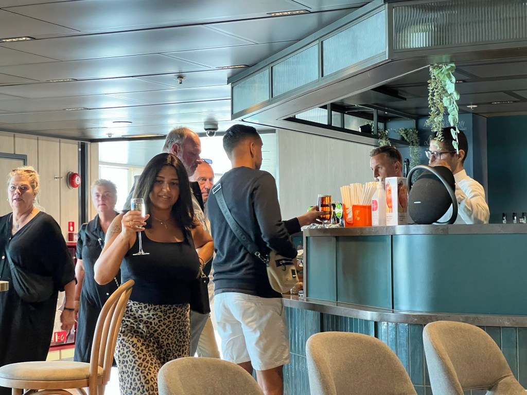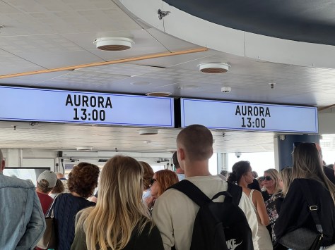 Redan när jag ett par timmar senare stod och väntade på färjan tänkte jag ge upp resan, det var så mycket folk, och ljudnivån gjorde mig både yr och ångestladdad. Men jag gick ombord.