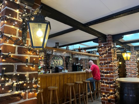 När jag tröttnade på att bara strosa runt så gick jag in på en liten bar med pyttelite Halloweenpynt och tog en öl …