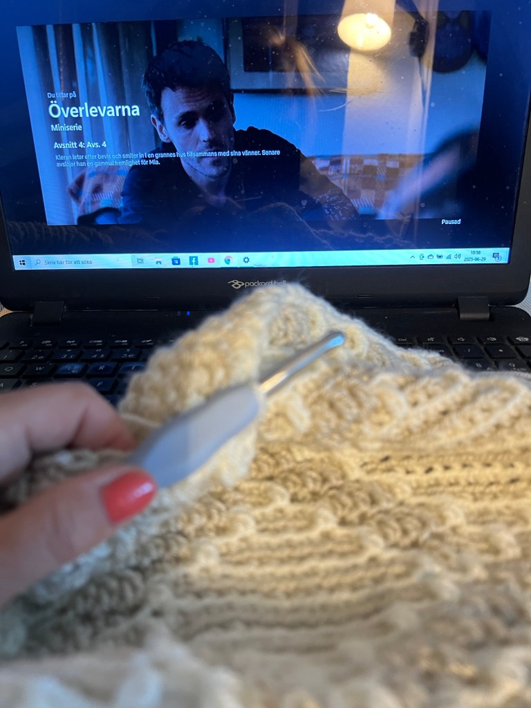 Och förutom jobb så har virkning varit på schemat, pendlat mellan två olika filtar jag håller på med … med Netflix.