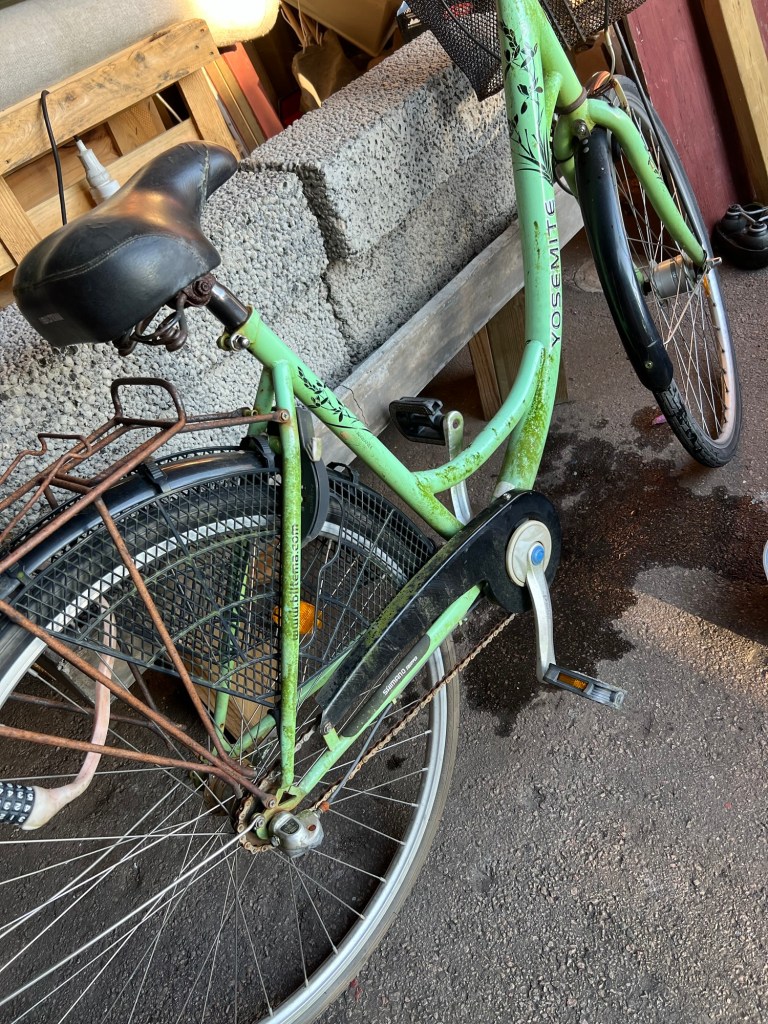 Jo! Höll på att glömma en sak. Syrran har flyttat till ny lägenhet, då fick jag dotterns cykel! Det är ju jättebra och kul. Den är bara lite misskött, så tvätta den ifrån mossa och försöka få bort värsta rosten, försökte erbjuda tonåringen med en tusing för att göra det åt mig, men nix det gick inte … konstig tonåring! 🤪 Sen måste jag byta hjul och handtag … förmodligen lite mer, så undran nu är: skulle det bli billigare och lättare att köpa en splittrans ny cykel? 😁