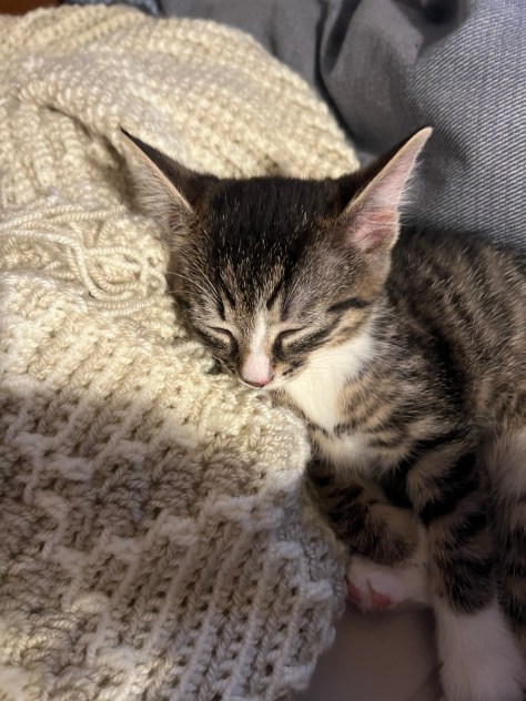 Härom kvällen kom en av de små och somnade på min virkning … så himla söt <3