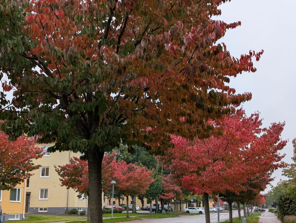 Har hämtat paket med lite kläder, kängor och annat och blev åter igen så lycklig och lugn när jag gick igenom en gata med så vackra lövfyllda träd, och hus med lite av höstens beklädnad.