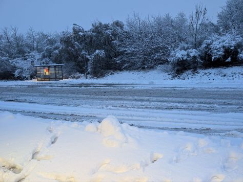 Tog en sväng till byn för lite inköp efter jobb (jo, bussen var försenad 15 minuter), men huvudsaken är att den kommer, kan inte klandra chafförer i snöväder.