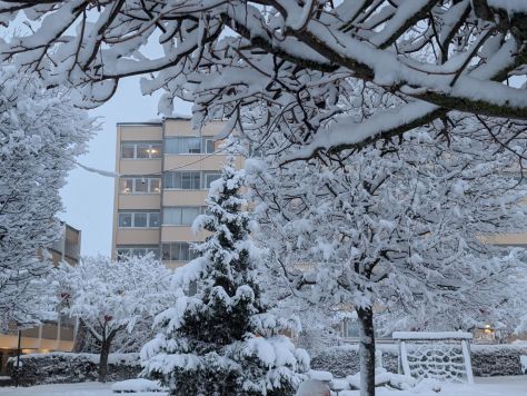 … och den kom med dunder och brak, nä inte dunder och brak, väldigt tyst kom den … snön.