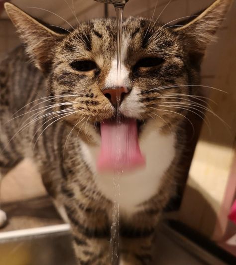 Sonen skickade mig denna bild på katten som gillar drick vatten ur kranen, den är verkligen inte rädd för vatten kan jag säga.