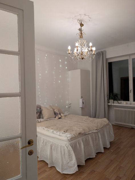 … hennes dotter är överlycklig över sitt nya sovrum, jättestort med egen liten hall, klädkammare och toalett med dusch. Som en minilägenhet :-)