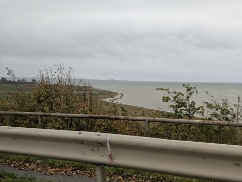 Rasande fart mot färjan … om vi hann med? Nä, missade ”vår” färja med en minut … så bara att stå att vänta, men med kaffe i bilen gick det bra.