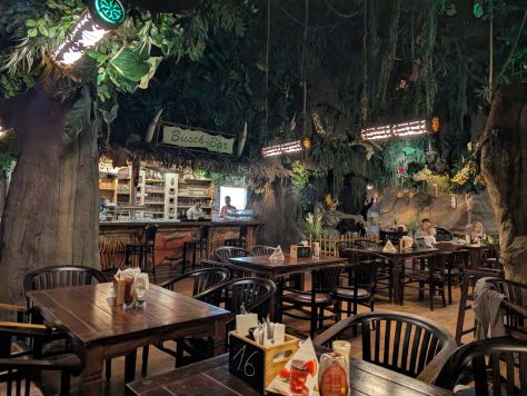 När våra tre timmar gått gick vi hem och fixade till oss för lite mat. Gick ut och vi tänkte prova Djungelrestaurangen …
