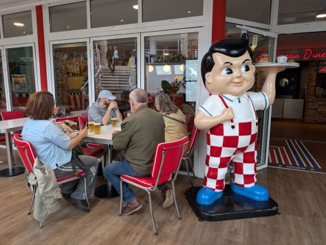 Restaurangerna hade inte öppnat när vi kom dit, förutom ett litet hamburgerhak, eller litet och litet, det var ganska stort. Magarna kurrade så det fick bli lite pommes och nachos för att stilla det värsta, och en varsin öl,
