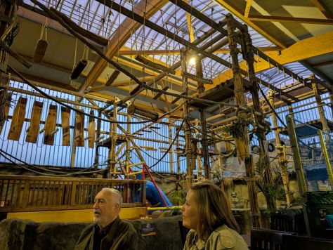 När vi kände oss färdiga med att studera djur så gick vi och satte oss med en öl. Och funderade på om man skulle våga gå/klättra hinderbanan eller vad den nu kallas …