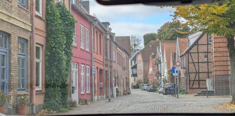 Vi alla sov tills vi vaknade av oss själva, inga larm, ingenting. Lite frukost och sedan satte vi oss i bilen för en liten utflykt. Genom otroligt vacker skog och underbar natur, bland vackra gamla hus och bondgårdar, minisamhällen och lite större samhällen. Vi kom lite fel och hamnade i centrala Plön, vilken fin och gullig liten stad med kullersten och sjöutsikt. Hade jag fått bestämma hade vi stannat till där och utforskat staden lite mer, men nu var vi på väg till en annan stad så det blev bara en bild genom bilfönstret.