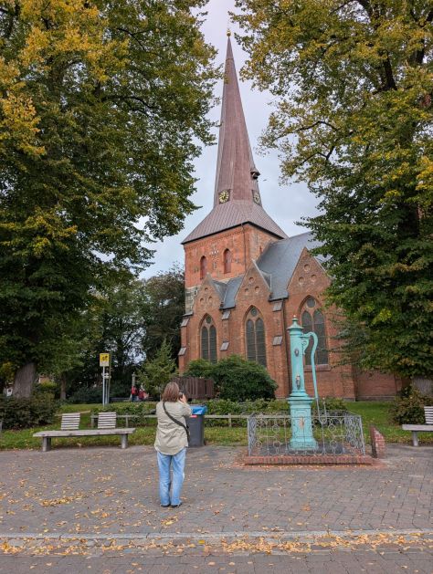 Efter en stunds körning kom vi fram till vårt mål; Nortorf. Där handlade vi lite på Lidl för att sedan finna en parkering mitt i stan. Lätt som en plätt och vi steg ut och andades in den Nortorfta luften. I kyrkan där konfirmerades min farbror Gerard … och inte bara jag dokumenterade kyrkan, så gjorde även syrran :-)