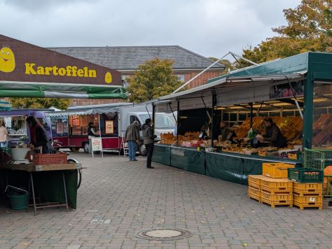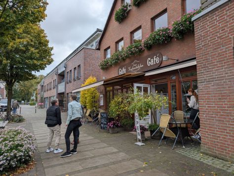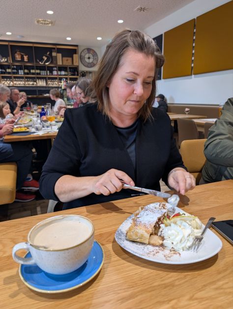 Första gången jag kunde beställa kaffe till mig och alla på tyska! Ganska mycket smärtfritt, hahaha :-D . Men det slutade med att det bara blev två svarta kaffe (för maskinen gick sönder), en varm choklad och två latte. Men det var gott det med + en varsin munk med alldeles för mycket sylt i, i min smak … inte för de andras :-D