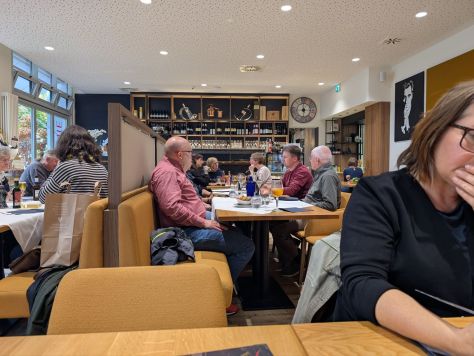 Alltså vilka glassar, äppelkakor, våfflor de har … satan i gatan! Glassbaren är en dröm! Men de har ”vanlig” mat där också, det såg jag då det fanns andra som åt ”lunch” och restaurangen var så gott som fullsatt, vi hade nog bara tur att vi fick ett bord för fem personer. Jag tog en liten öl, jag övervägde att ta en Aperol Spritz då jag såg att väldigt många drack det, men det blev inte så.