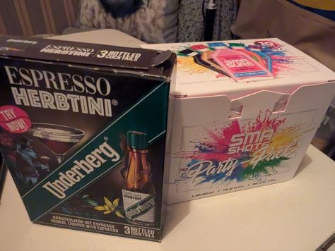 … inget av det ovanför (sist jag var där köpte jag en liten flaska Freixenet, som jag har havssalt i nu). Det jag köpte var en paket Små Sure och en ”låda” 19 crimes på burk (vitt vin), Underberg Espresso och en burk karameller Swiss Alpine Herbs.